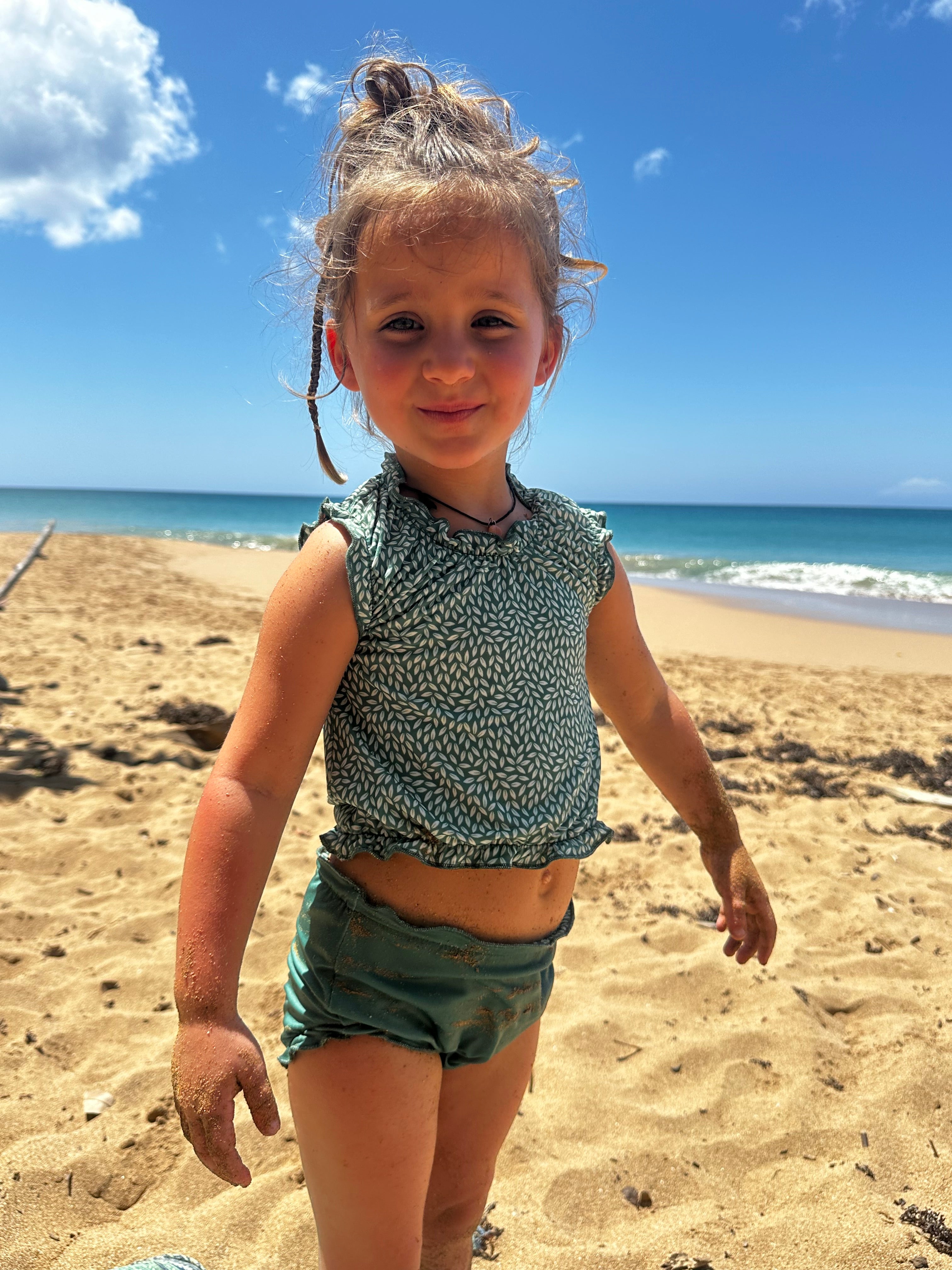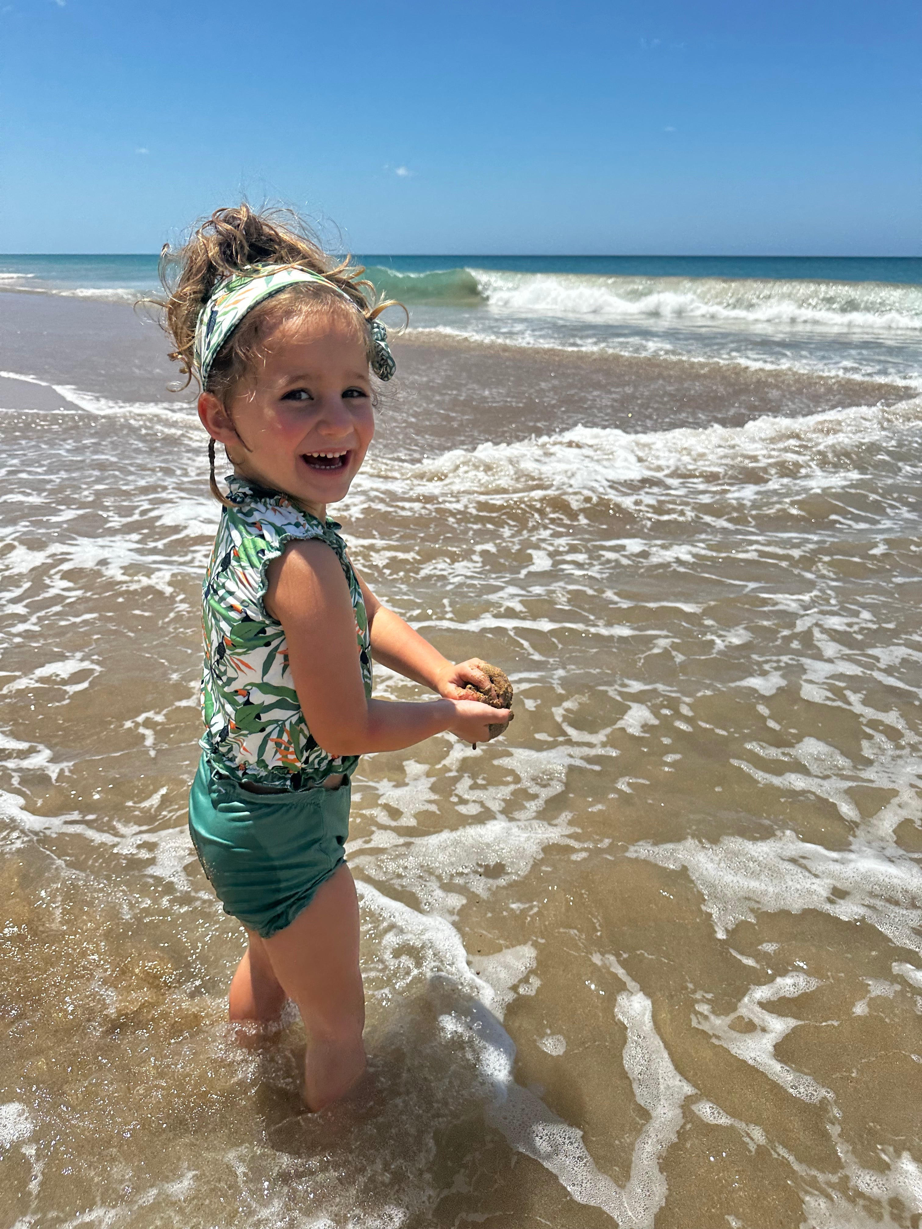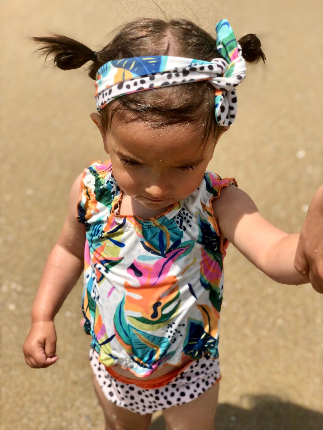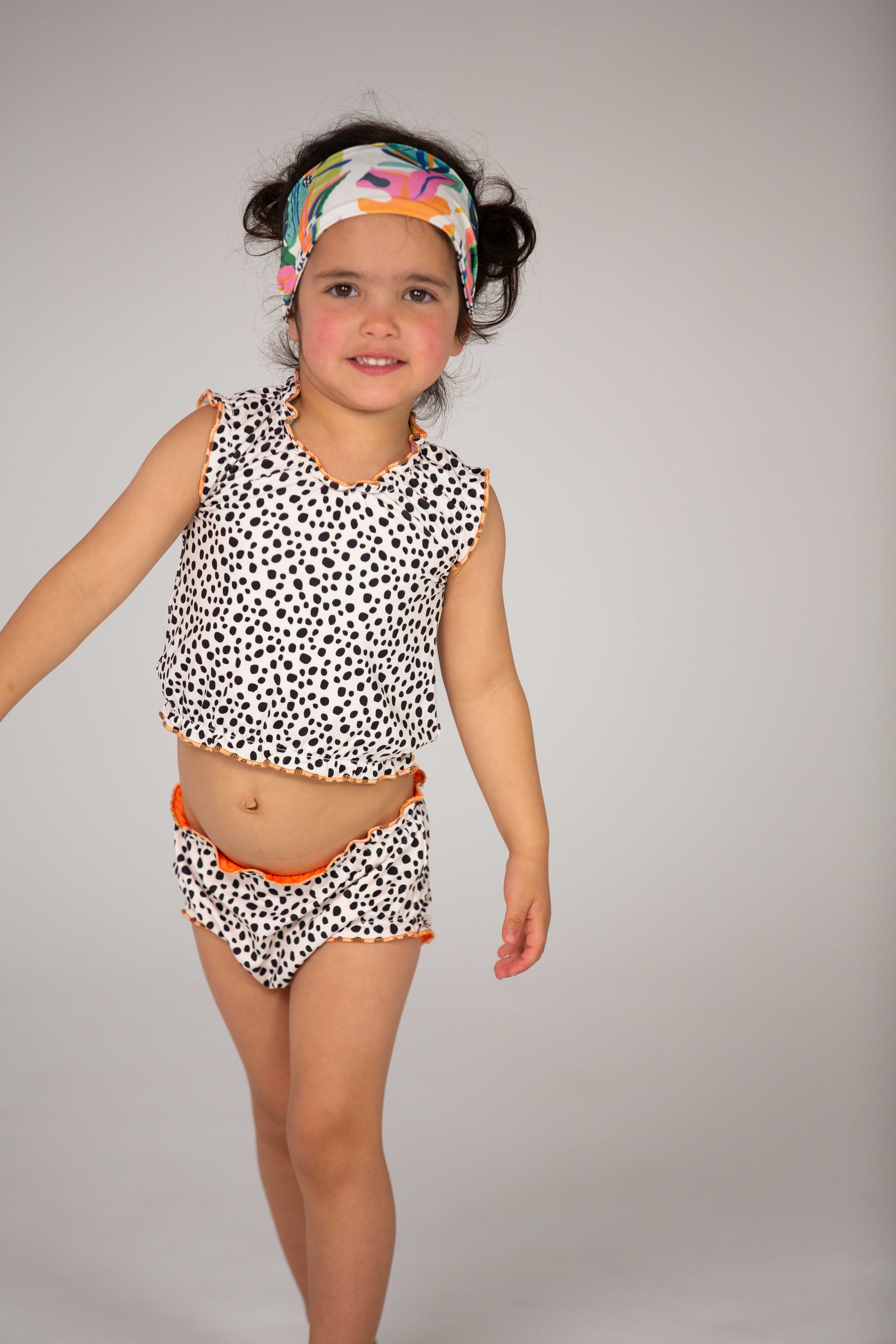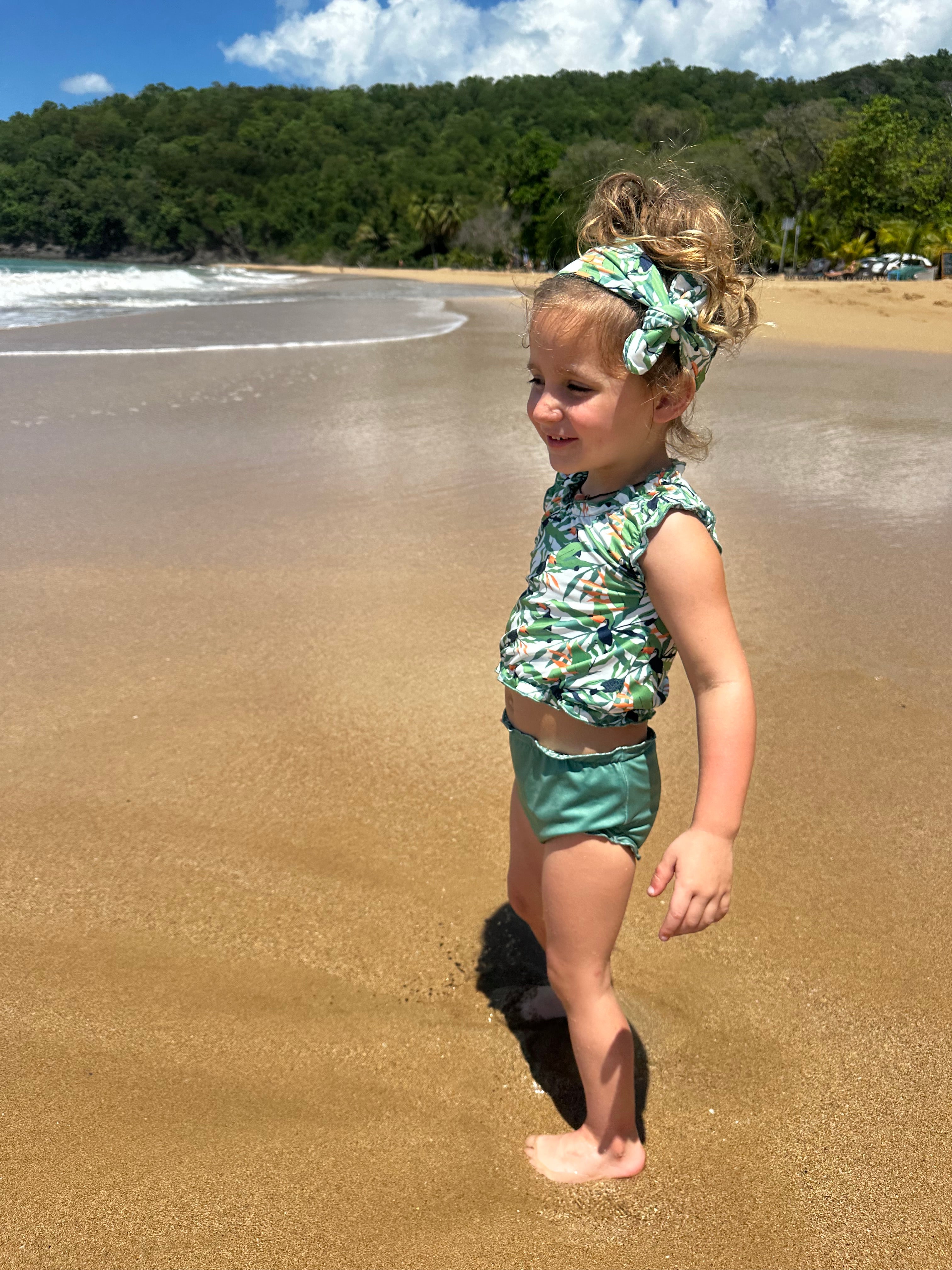 The latest cute tankini for babies and girls up to 4 years old can be worn on two sides and comes with a cute matching headband. The two-piece swimming suit has a high protection factor of 50+, even in wet conditions. You can wear the top, bottom and headband on two sides and combine them to your heart's content. Made of quick-dry material so don't get cold after a refreshing splash! The tankini in stretch fabric is also resistant to fresh and salt water and chlorine. The tankini is tested on harmful substances so you can wear it without worries!