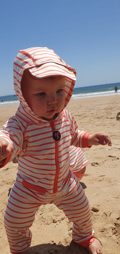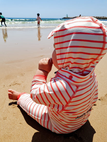 La longue combinaison en lycra anti-UV avec imprimé Ducksday original offre une protection complète contre le soleil ! Prêt pour des journées remplies de plaisir aquatique à la plage ou à la piscine sans soucis. Sur le dessus, la combinaison en lycra est équipée d'une capuche amovible pour protéger le cou, de boutons-pression pratiques pour un changement rapide des couches et d'une fermeture éclair extra longue. De plus, la combinaison sèche en quelques instants après une touche rafraîchissante !