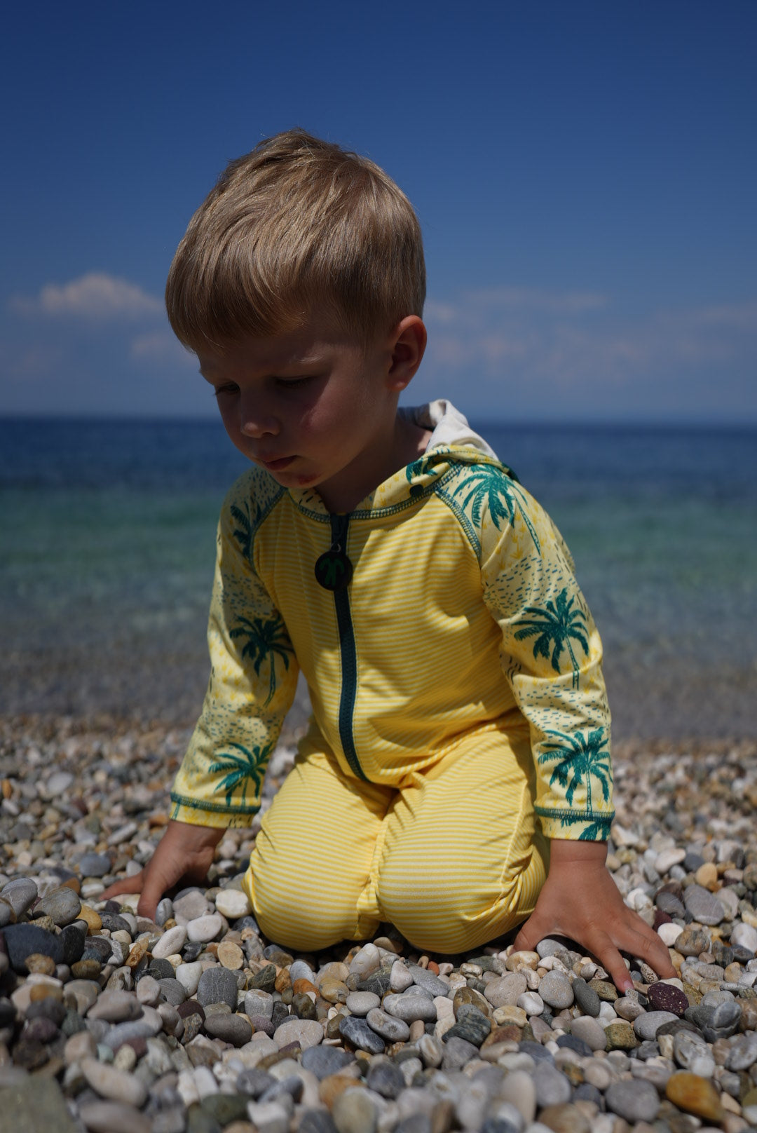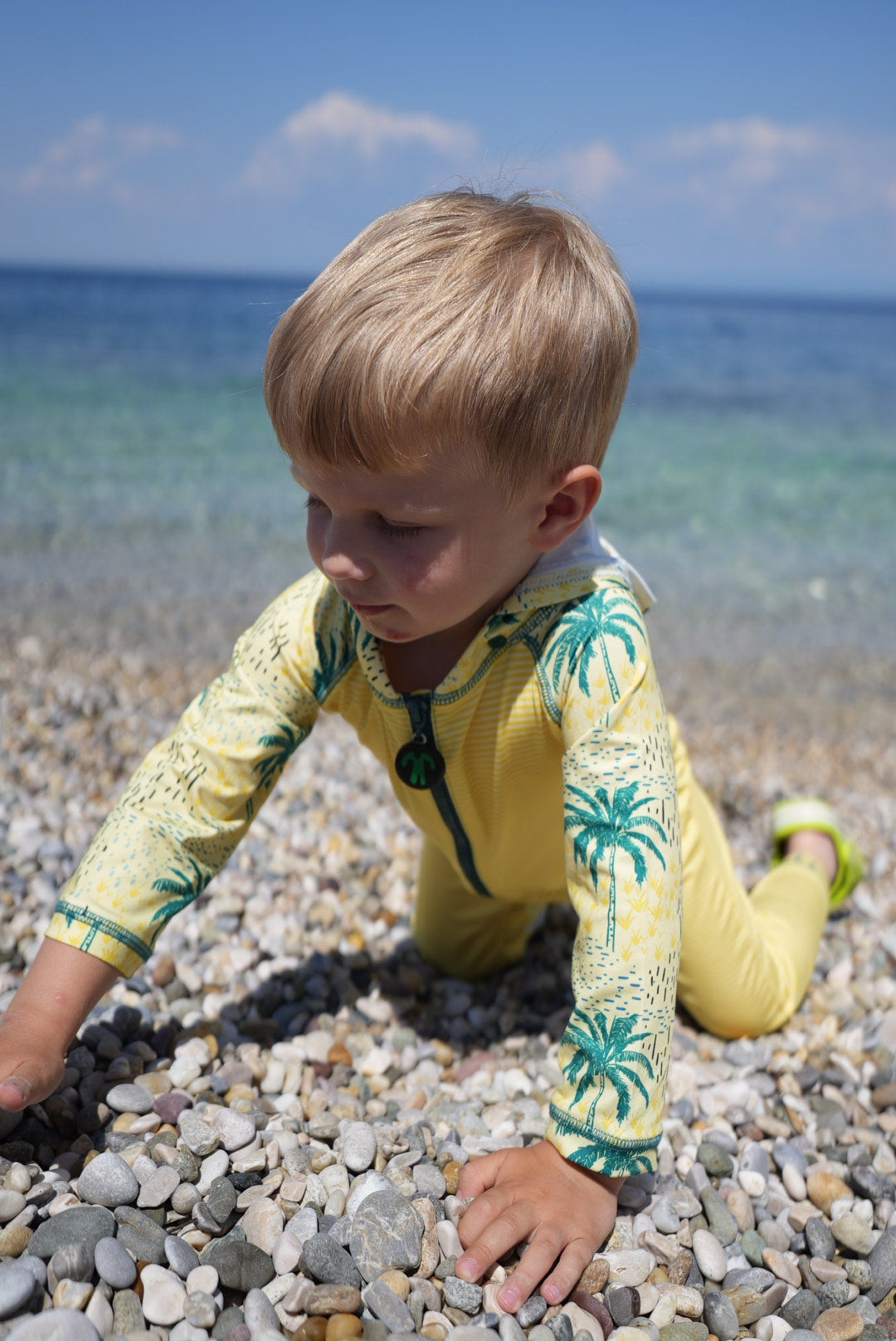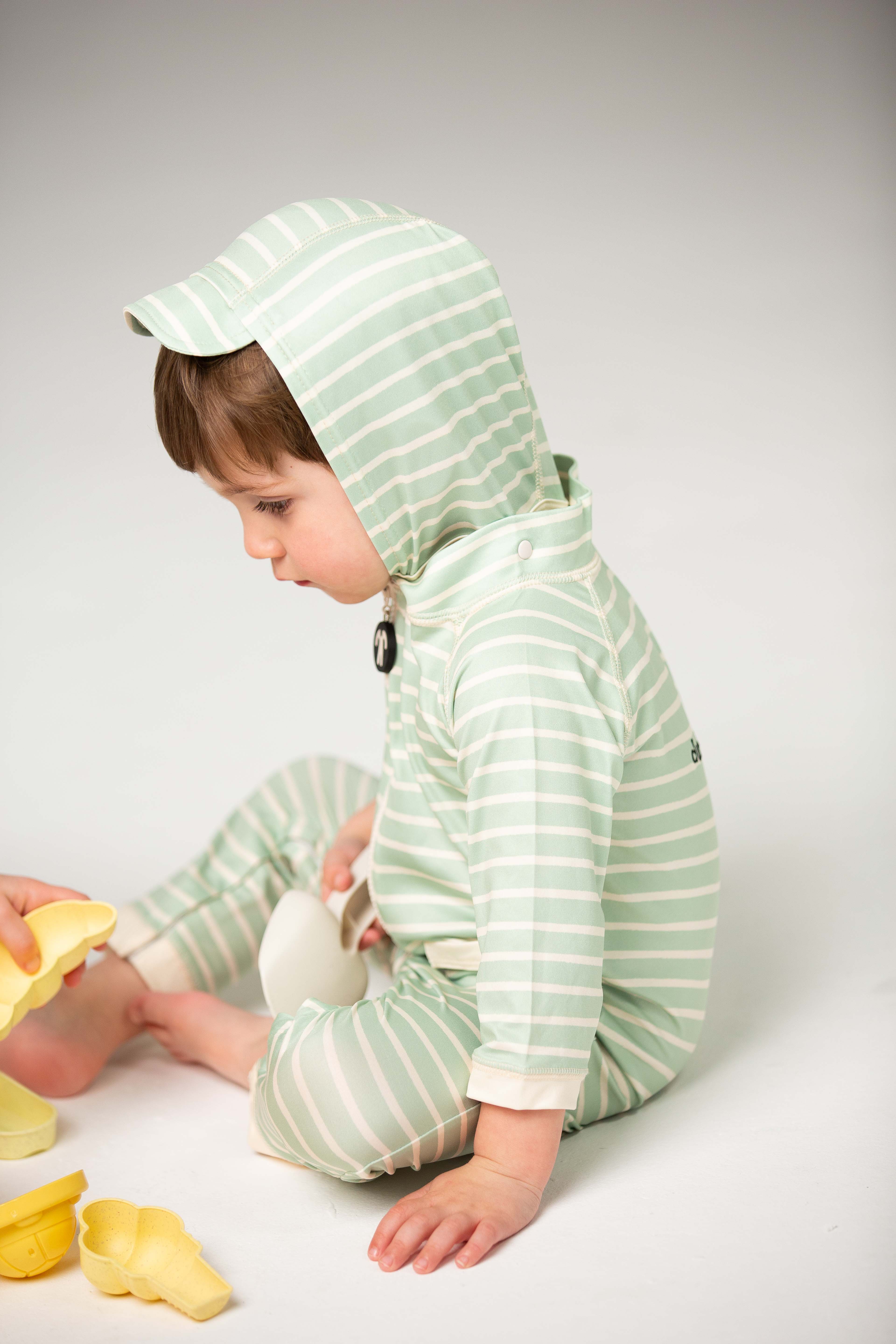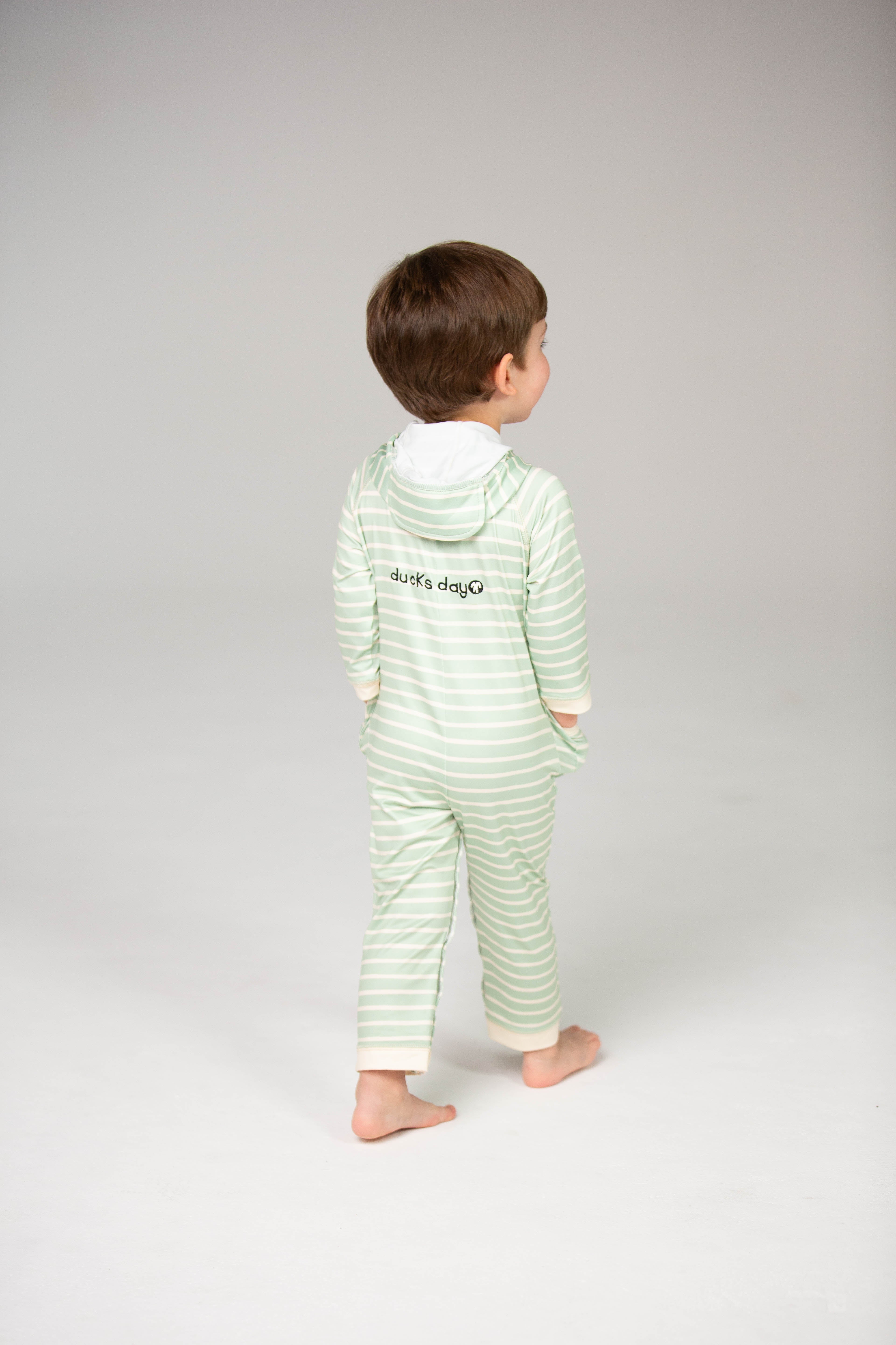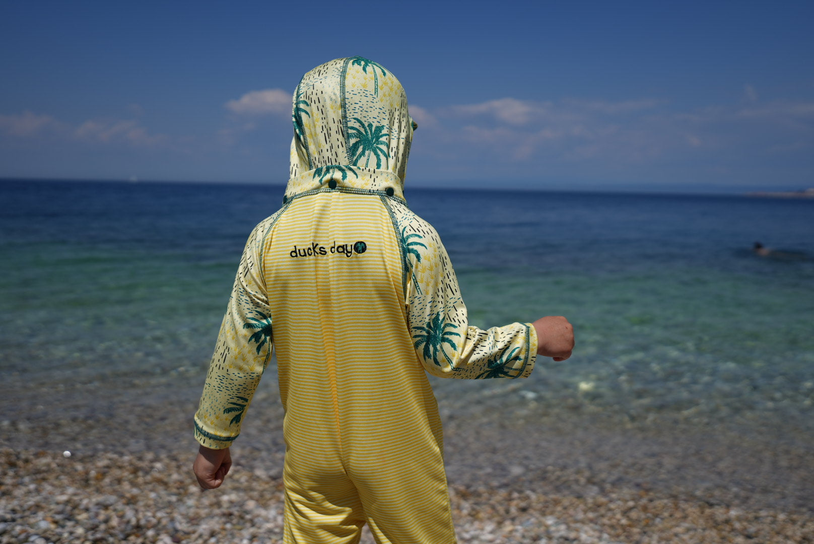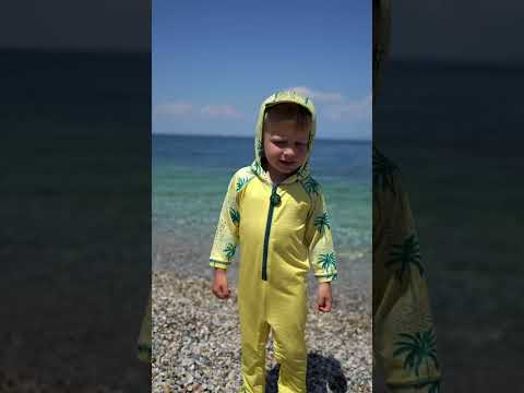 Het lange UV-beschermende lycra pak in originele Ducksday-print biedt volledige bescherming tegen de zon! Klaar voor dagen vol waterplezier op het strand of aan het zwembad zonder zorgen. Bovenop is het lycra pak voorzien van een afneembare capuchon ter bescherming van de nek, handige drukknopen voor een snelle luierwissel en een extra lange ritssluiting. Bovendien droogt het pak binnen enkele ogenblikken na een verfrissende plons!