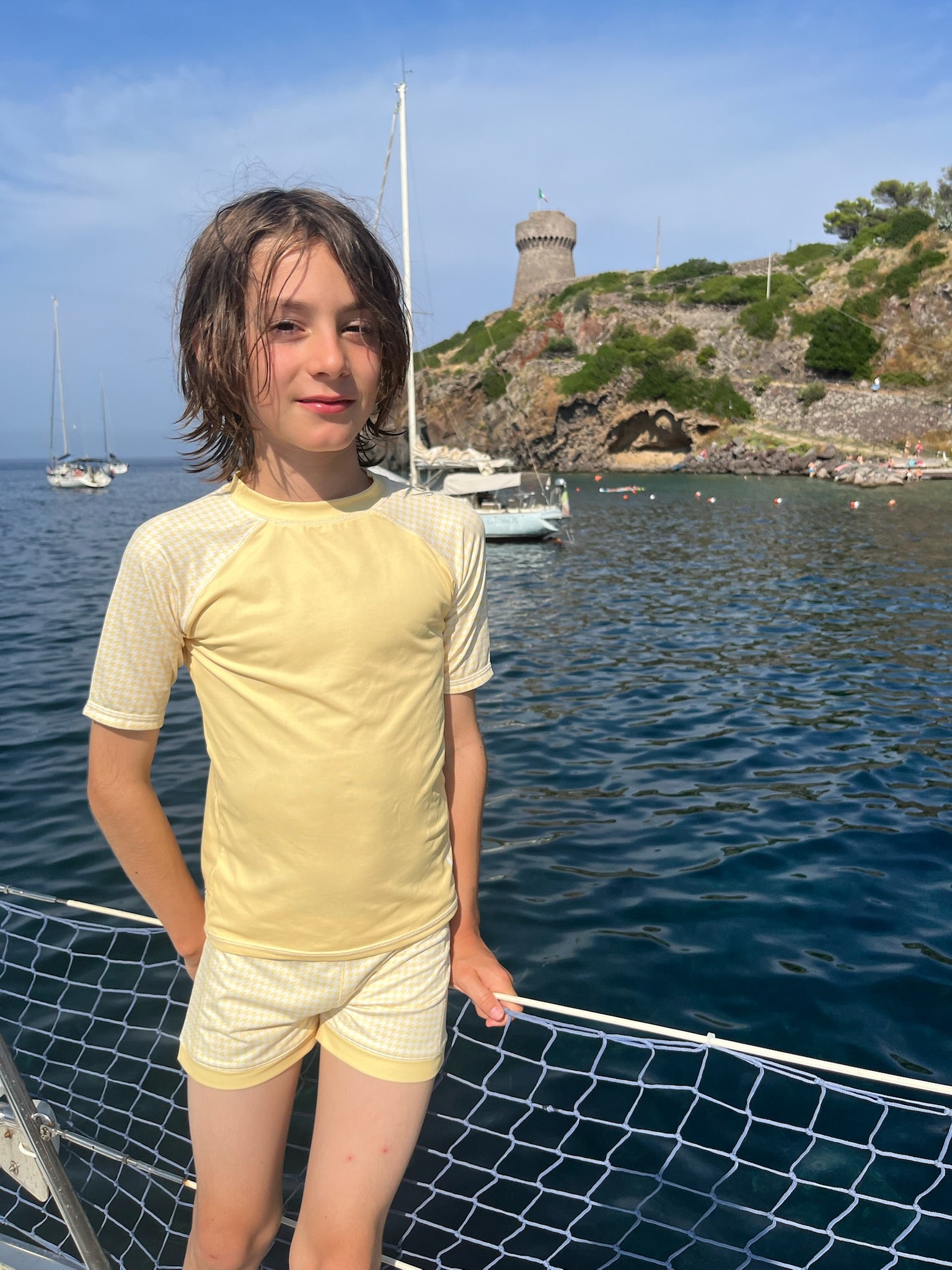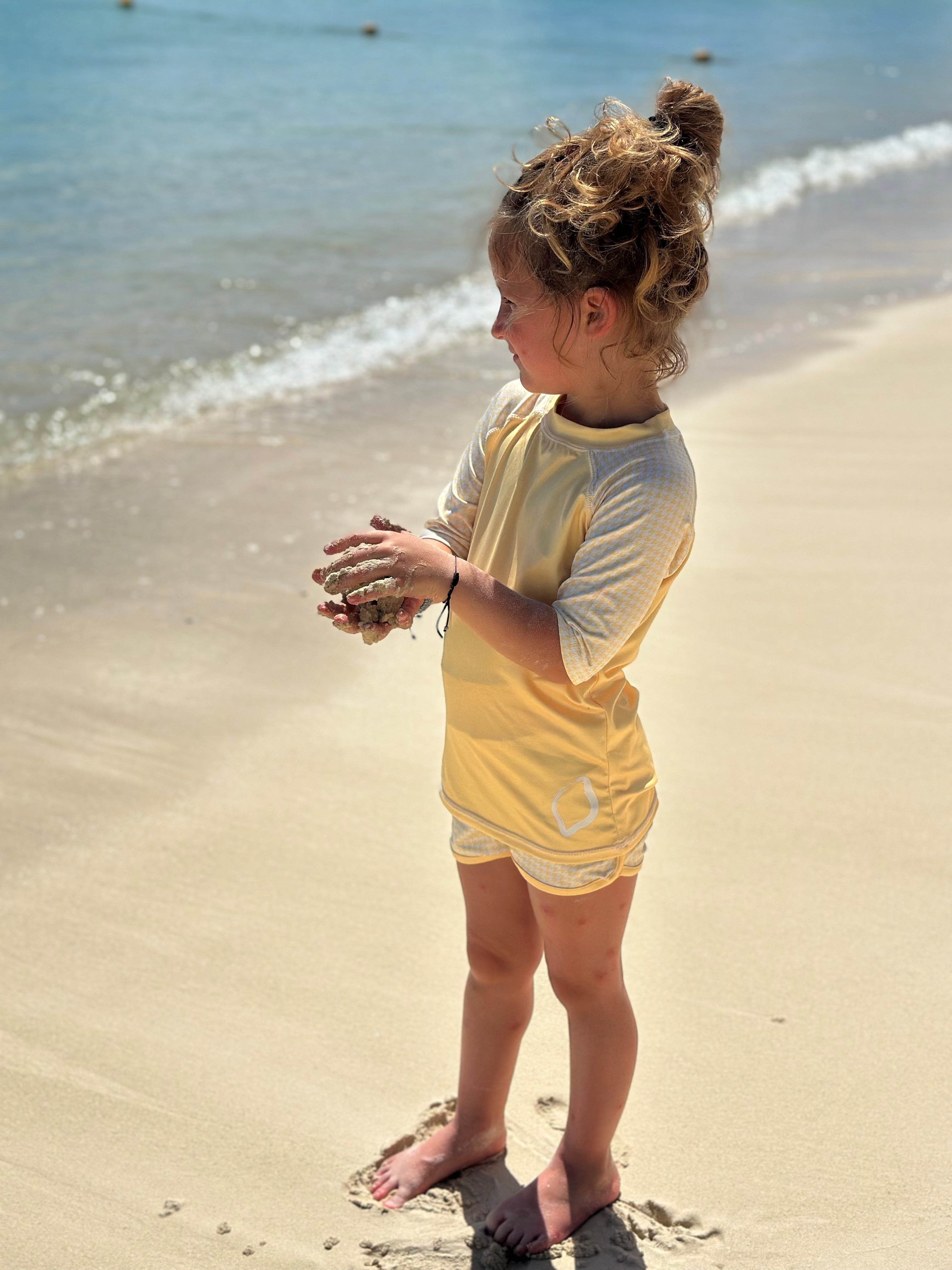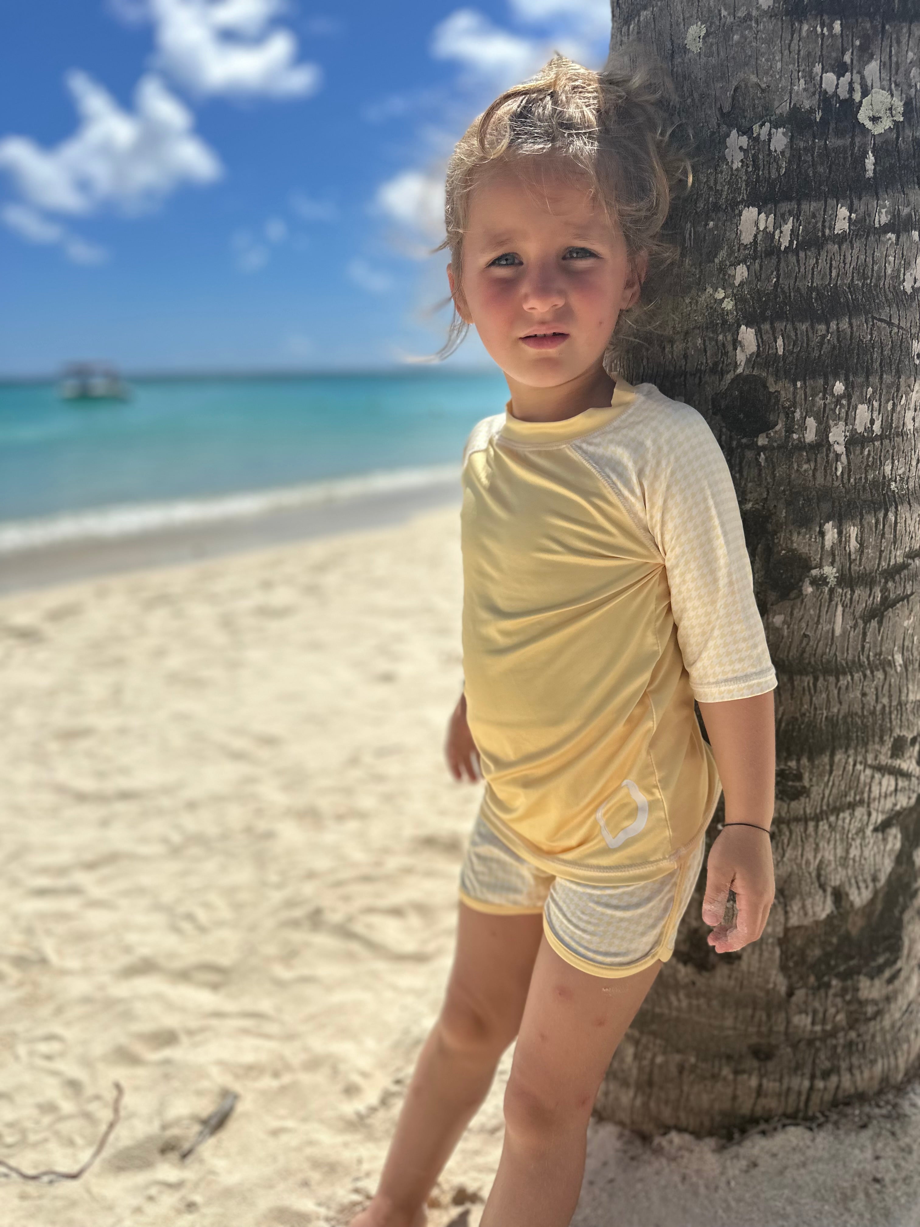 Avonturen op het strand en in het zwembad worden onvergetelijk met het Ducksday zwemshirt! De beschermingsfactor UPF50+ verzorgt de kwetsbare huid in en rond het water. Het shirt is gemaakt van sneldrogend materiaal waardoor je het niet koud krijgt na een plonsje. Combineer met bijpassende zwembroek voor een volledige Ducksday Zomeroutfit!